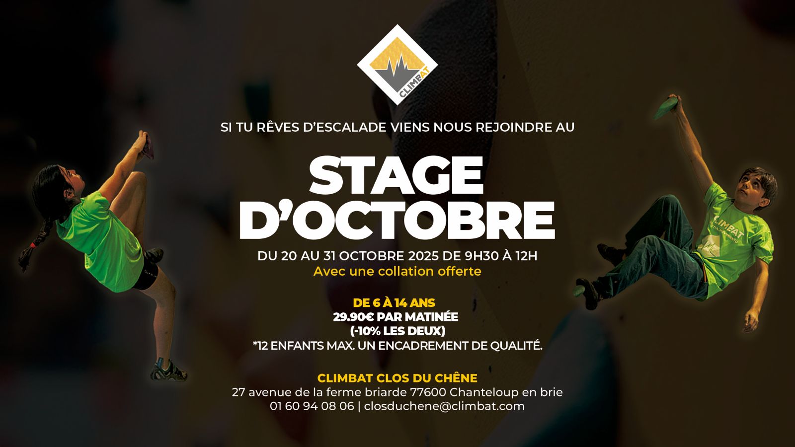 Stages d'escalade pour les vacances d'octobre ! Du 20 au 31 octobre De 9h30 à...